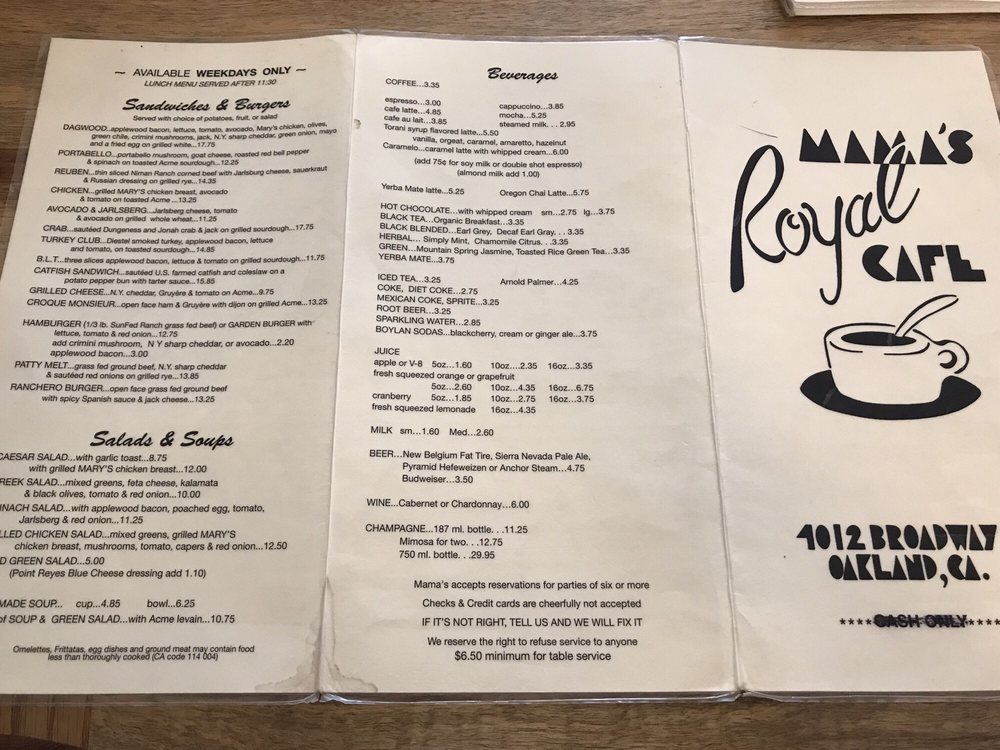 Mama’s Royal Cafe Menu